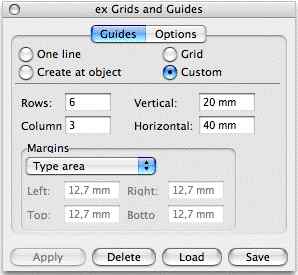 ex Grids&Guides is an XTension which lets you define guides by an entered numeric position in your own selected colors. You can also freely define layout grids with the additional option to select if these grids/guides are to be used on all pages or only on selected ones (e.g. left/right side). These guides or grids can be saved. The last change can be reverted to. The working speed of QuarkXPress is not affected.